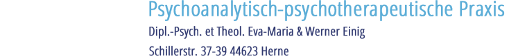 Seit Januar 2013 arbeiten wir psychotherapeutisch ausschließlich in eigener Praxis und behandeln dort sowohl gesetzlich wie privat Versicherte mit analytischer oder tiefenpsychologisch-fundierter Einzeltherapie. Für Kolleginnen und Kollegen bieten wir Supervisionen und Lehranalysen/Lehrtherapien an.